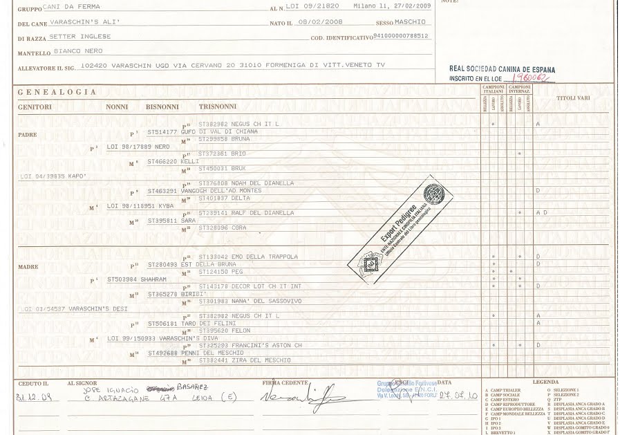 PEDIGREE DE LA CAMADA